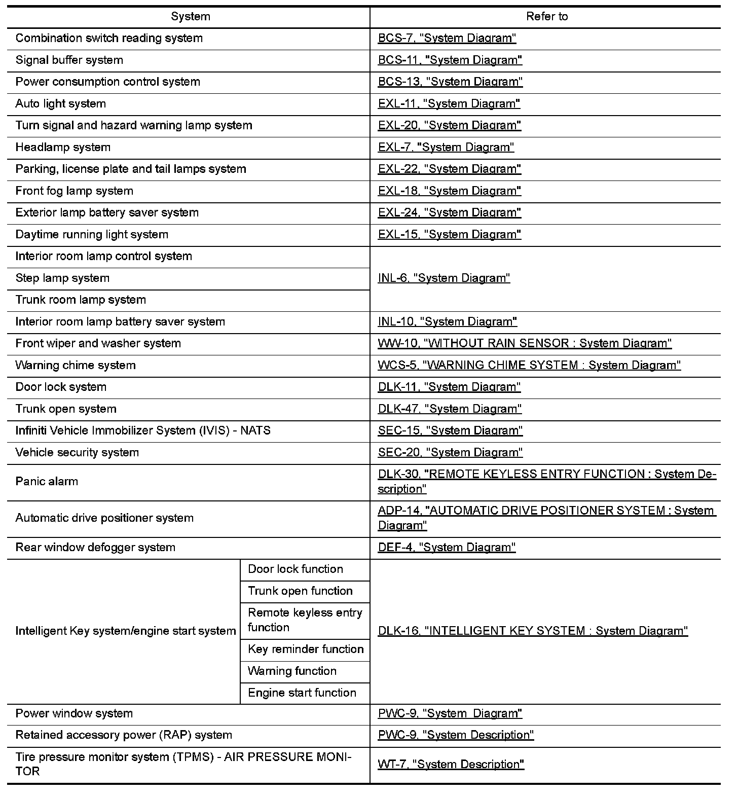 - BCM is equipped with the diagnosis function that performs the diagnosis with CONSULT and various settings.