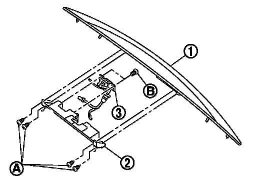 3.Remove the trunk lid request switch mounting screw (B), and then remove trunk lid request switch (3)