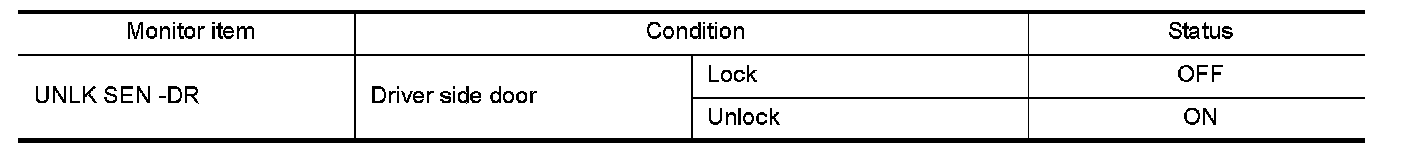 Check ("UNLK SENSOR -DR") in "Data Monitor" mode using CONSULT.
