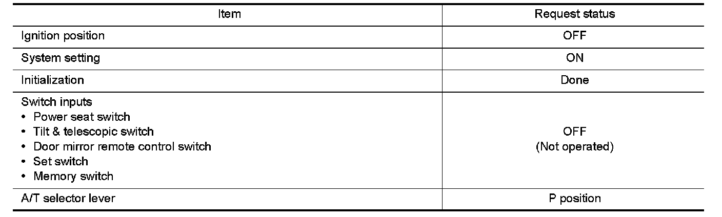 When exiting, the condition is satisfied, the seat is moved backward 40 mm (1.57 in) from normal sitting position and the steering is moved to the most upper position and front position.