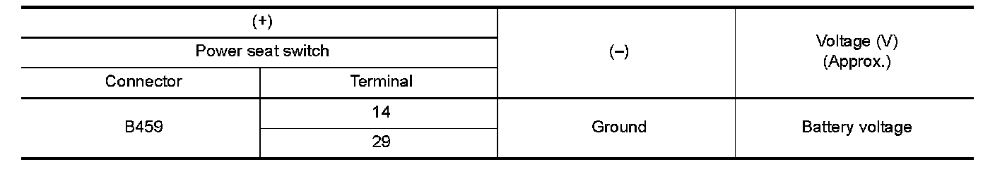 4.Check voltage between power seat switch harness connector and ground.