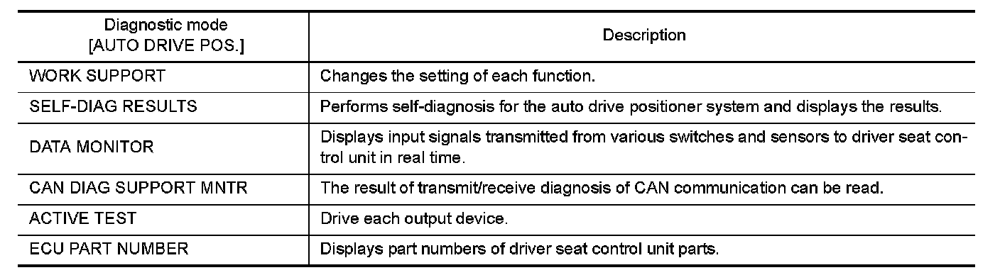 The auto drive positioner system can be checked and diagnosed for component operation with CONSULT.