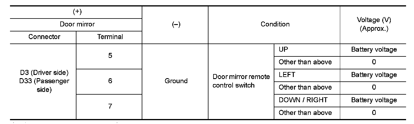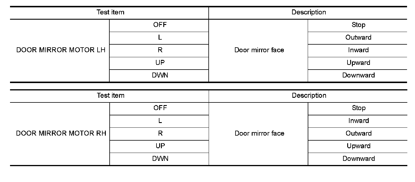 3.Check the door mirror motor operation.
