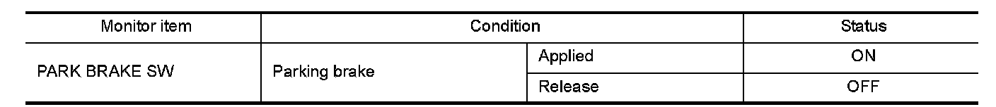 2.Check parking brake switch signal under the following conditions.
