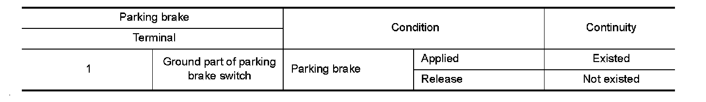 3.Check continuity between parking brake switch terminal and ground part of parking brake switch.