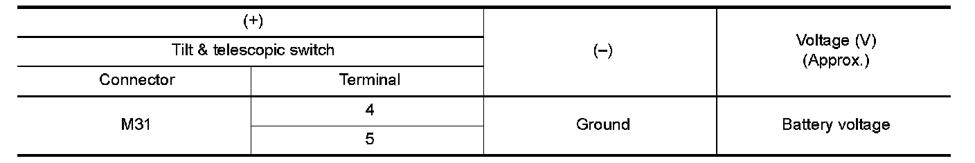 4.Check voltage between tilt & telescopic switch harness connector and ground.