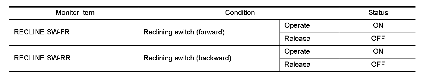 2.Select "RECLN SW-FR", "RECLN SW-RR" in "Data monitor" mode using CONSULT.