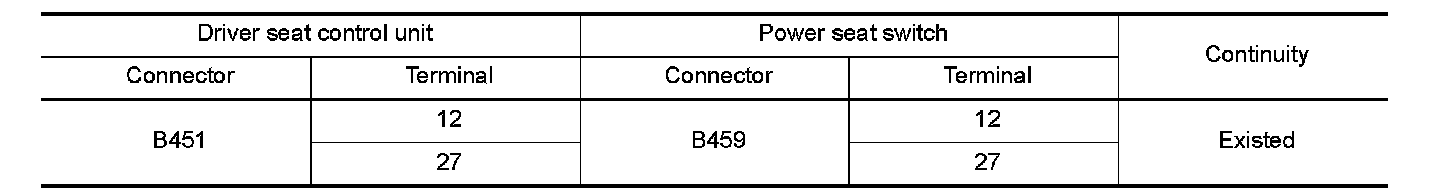 3.Check continuity between driver seat control unit harness connector and power seat switch harness connector.