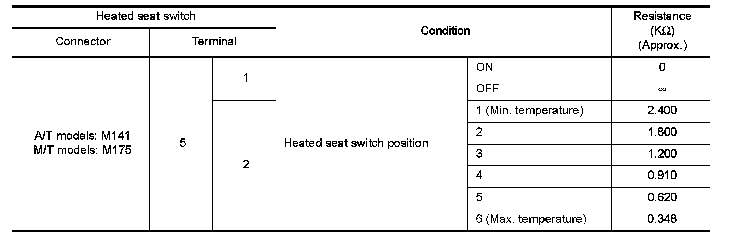 NO- Replace heated seat switch. Refer to "Removal and Installation" Removal and Installation.