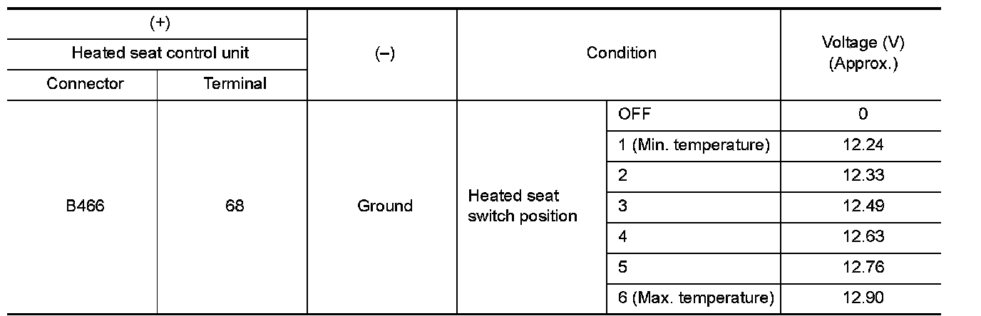 1. CHECK HEATED SEAT CONTROL UNIT INPUT SIGNAL