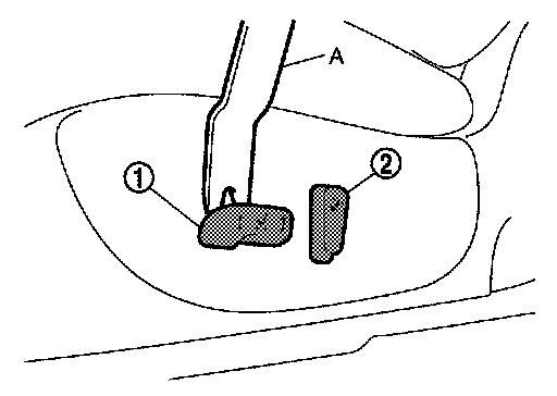 - Remove the seat slide and lifter switch knob (1) and seat reclining switch knob (2). Using a remover tool (A).