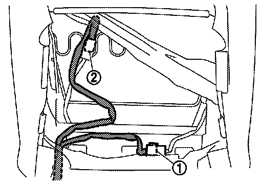 - Disconnect the side support unit harness connector (2) and remove the harness clamp. (Side support model only.)