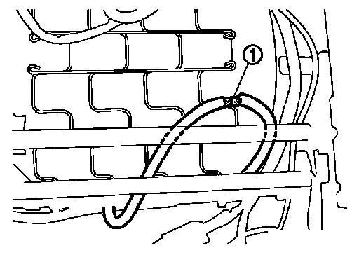 - Disconnect the reclining motor harness connector (1) and remove the harness clamp.