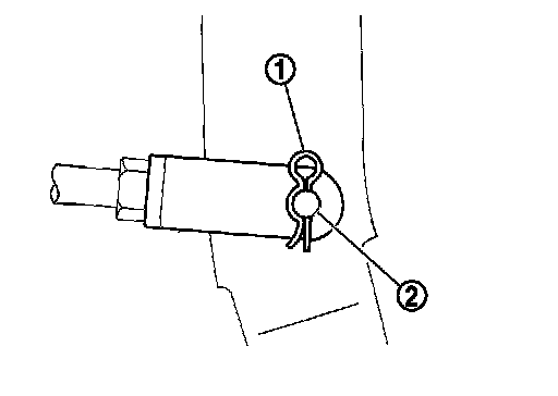 7.Remove snap pin (1) and clevis pin (2) from clevis of brake booster.