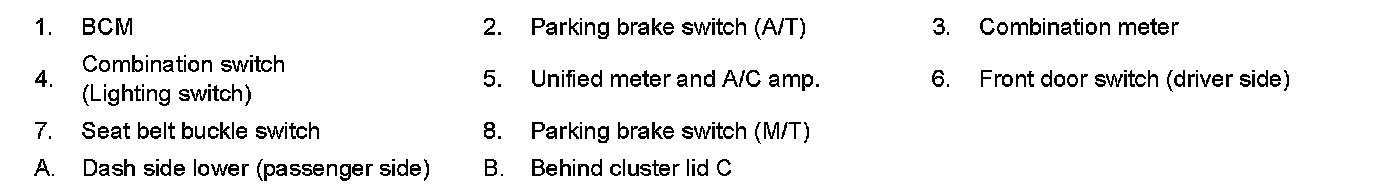 PARKING BRAKE RELEASE WARNING CHIME : Component Parts Location