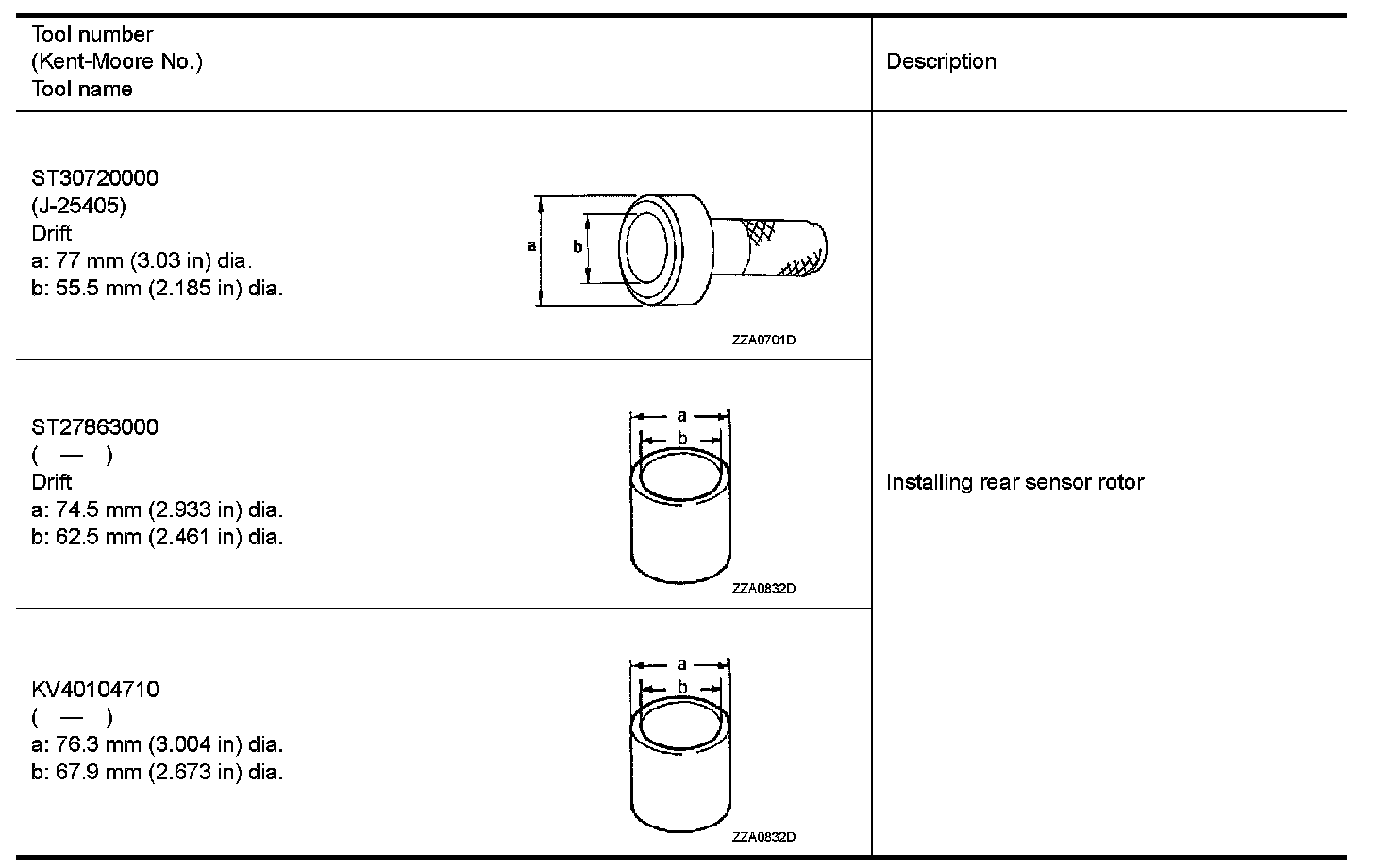 The actual shapes of Kent-Moore tools may differ from those of special service tools illustrated here.