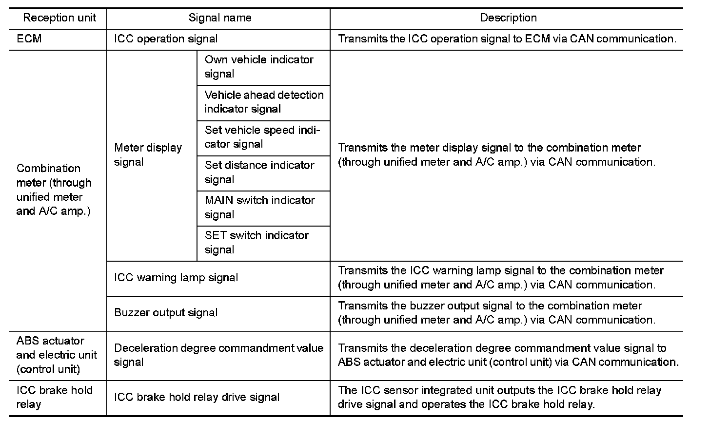 ICC SENSOR INTEGRATED UNIT INPUT/OUTPUT SIGNAL ITEM