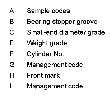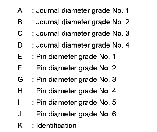4.Apply the symbol obtained to the "CONNECTING ROD BEARING GRADE TABLE" to select connecting rod bearing.