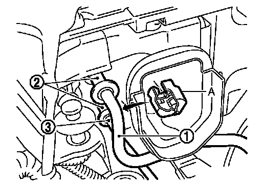 6.Remove mounting bolt (A) from condenser pipe assembly (1).