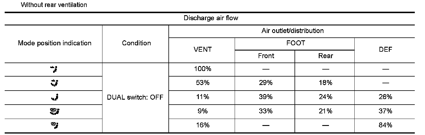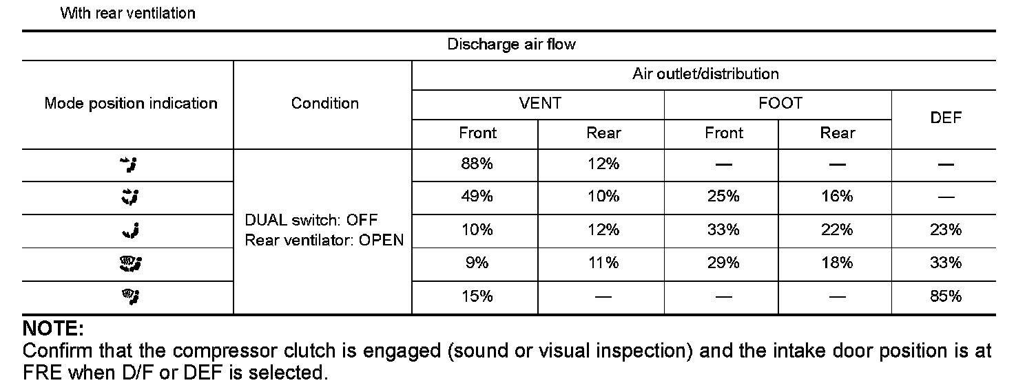 3.Confirm that discharge air comes out according to the air distribution table as follows: