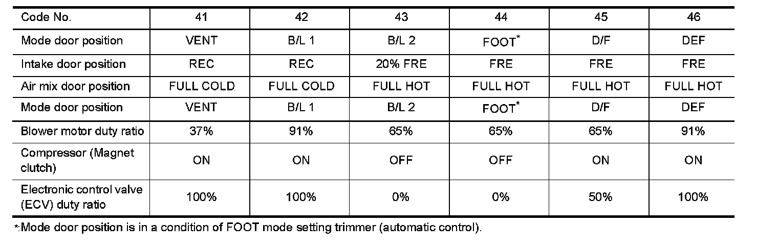 (Corresponding code Nos. indicates 1 second each if two or more mode or intake door motor malfunction.)
