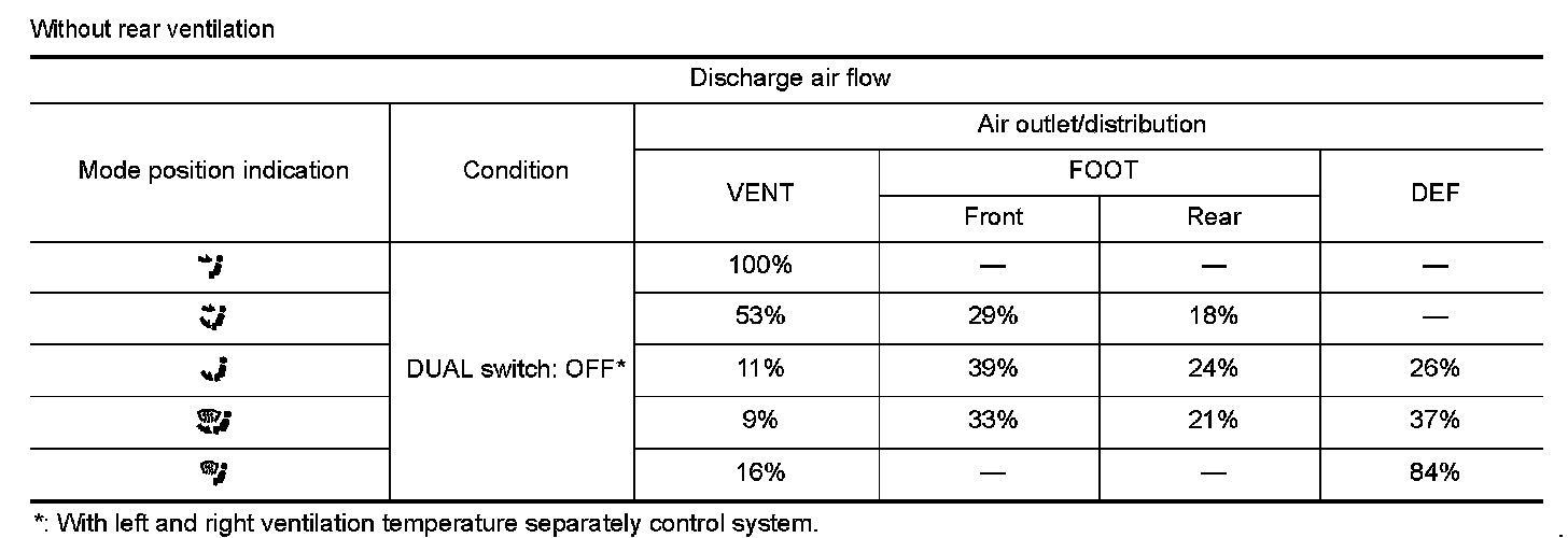 *1: Without left and right ventilation temperature separately control system.