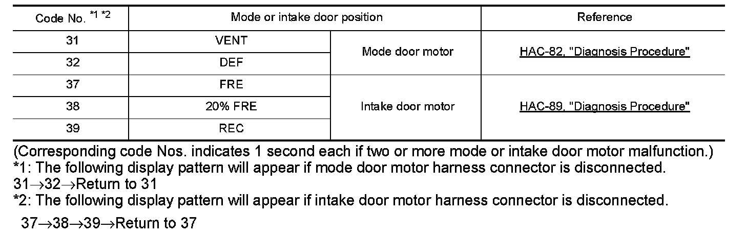 *1: The following display pattern will appear if mode door motor harness connector is disconnected.