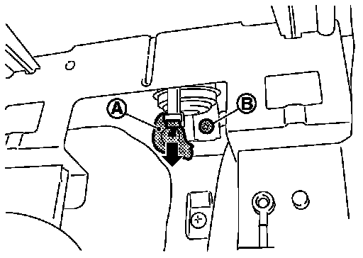 - Disengage harness cover fixing pawl (B) by using tool (A)