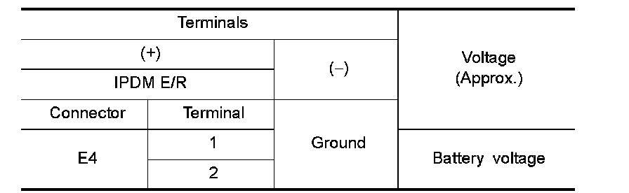 3.Check voltage between IPDM E/R harness connector and the ground.