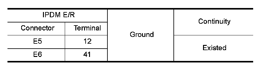 Check continuity between IPDM E/R harness connectors and the ground.