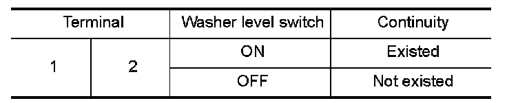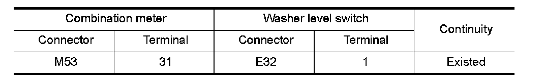3.Check continuity between combination meter harness connector terminal and washer level switch harness connector terminal.