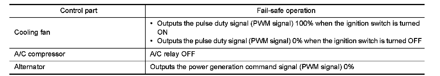 When CAN communication with ECM and BCM is impossible, IPDM E/R performs fail-safe control. After CAN