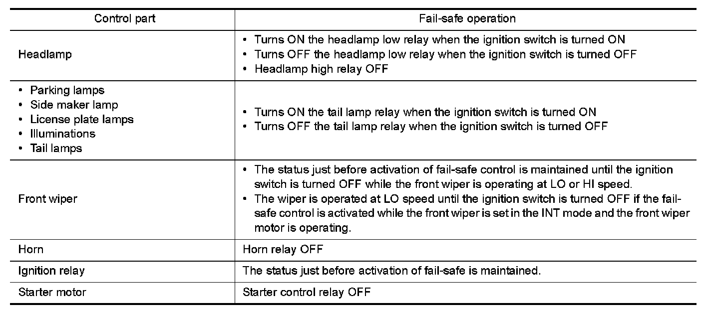 - If the ignition relay cannot turn OFF due to contact seizure, it activates the tail lamp relay for 10 minutes to alert the user to the ignition relay malfunction when the ignition switch is turned OFF.