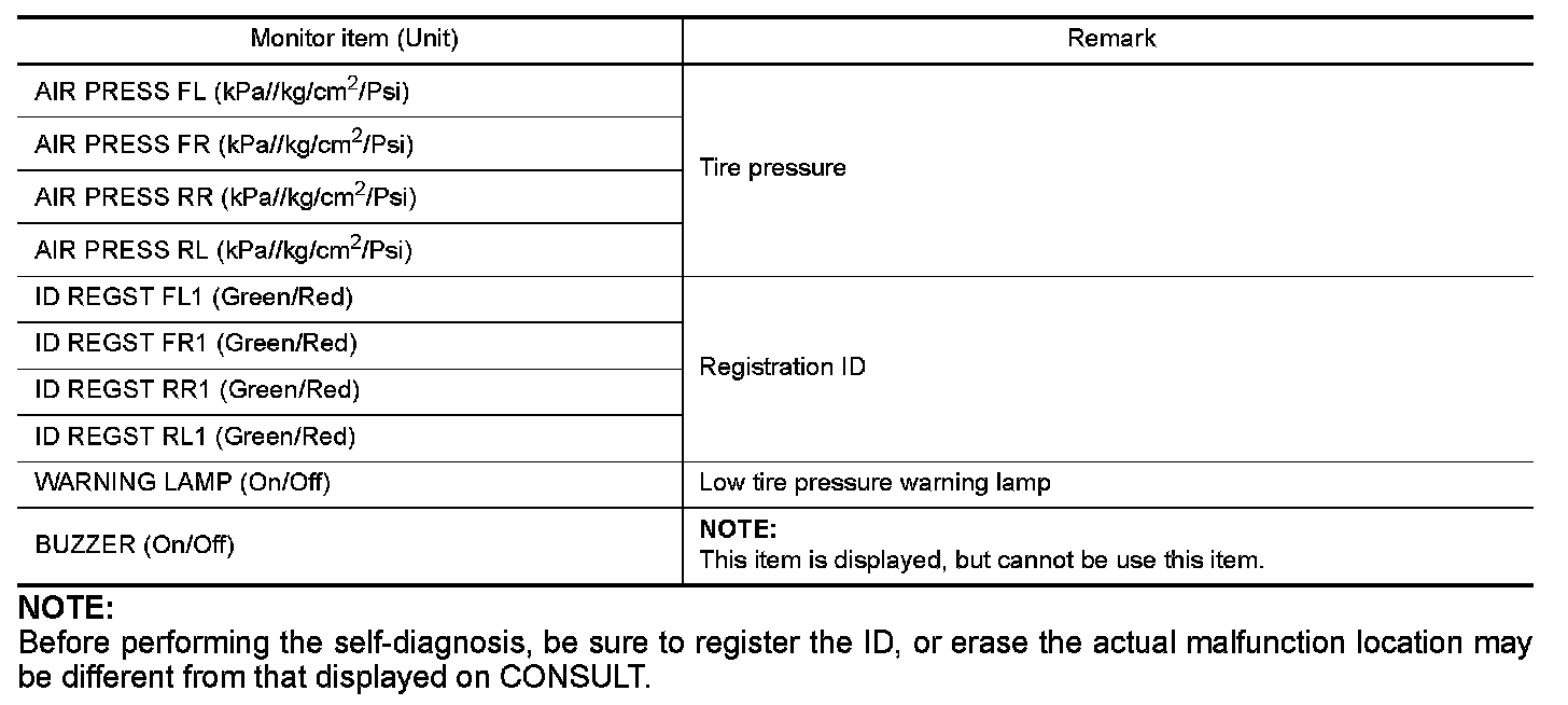 - The following table includes information (items) inapplicable to this vehicle. For information (items) applicable to this vehicle, refer to CONSULT display items.