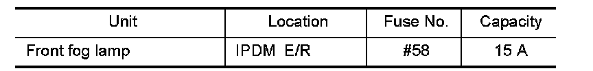 3.Check continuity between the IPDM E/R harness connector and the front fog lamp harness connector.