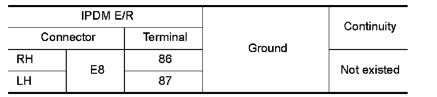 2.Check continuity between the IPDM E/R harness connector and the ground.