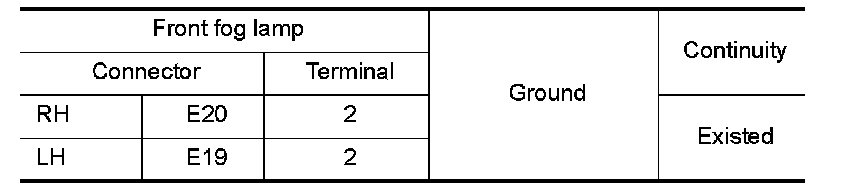 2.With operating the test items, Check that the front fog lamp is turned ON.