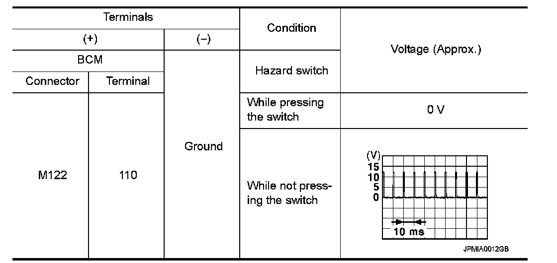 With operating the hazard switch, check the voltage between the BCM harness connector and the ground.