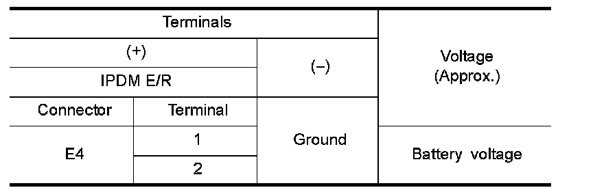 3.Check voltage between IPDM E/R harness connector and the ground.