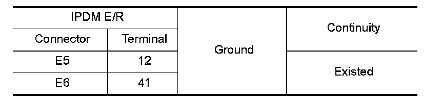 Check continuity between IPDM E/R harness connectors and the ground.