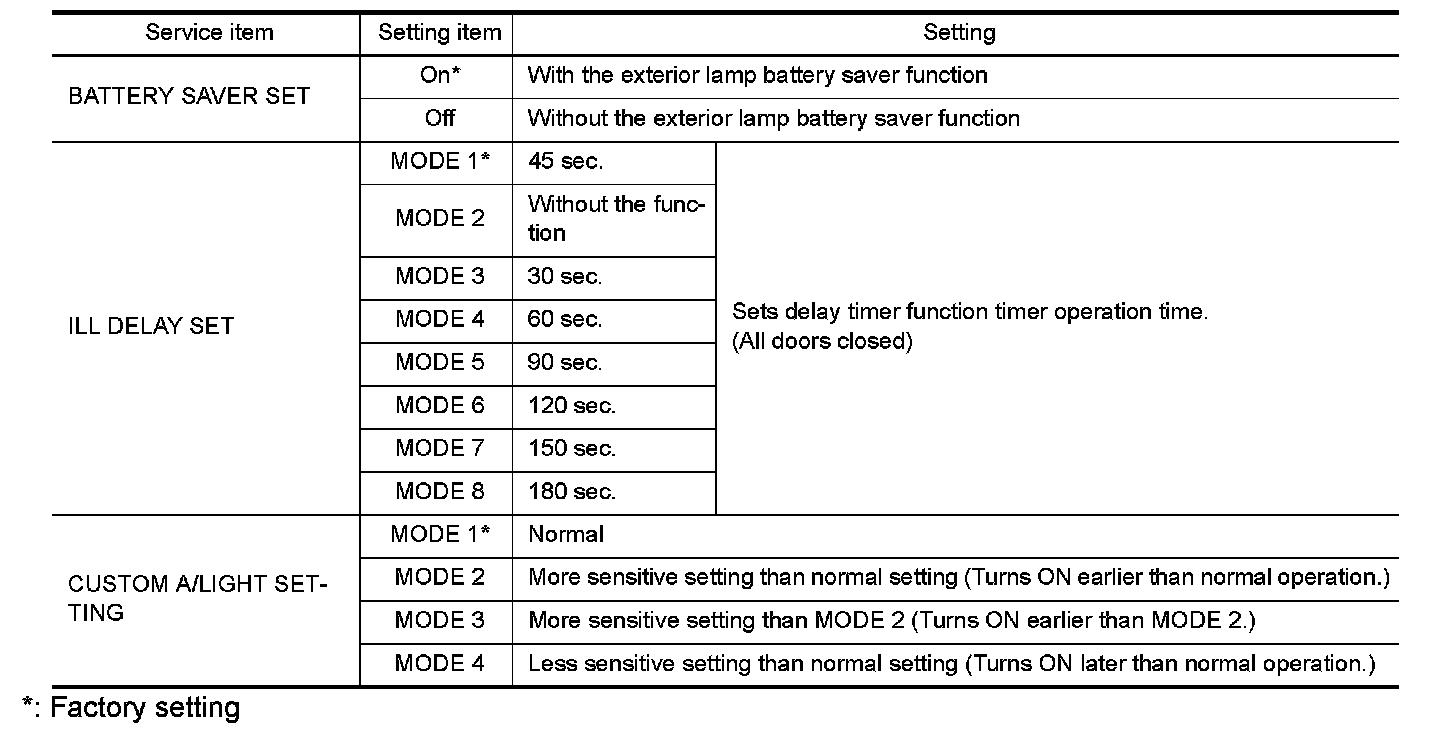 *: Factory setting