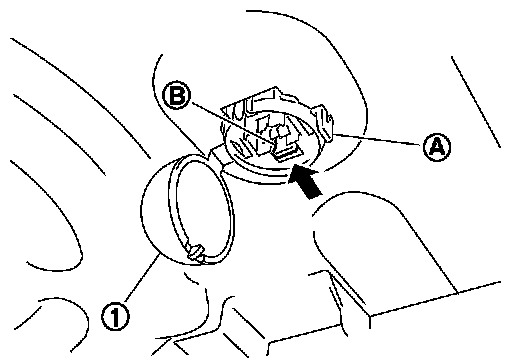 3.Pressing the pawl (B) to the arrow direction (black arrow). Pull out the trunk room lamp.