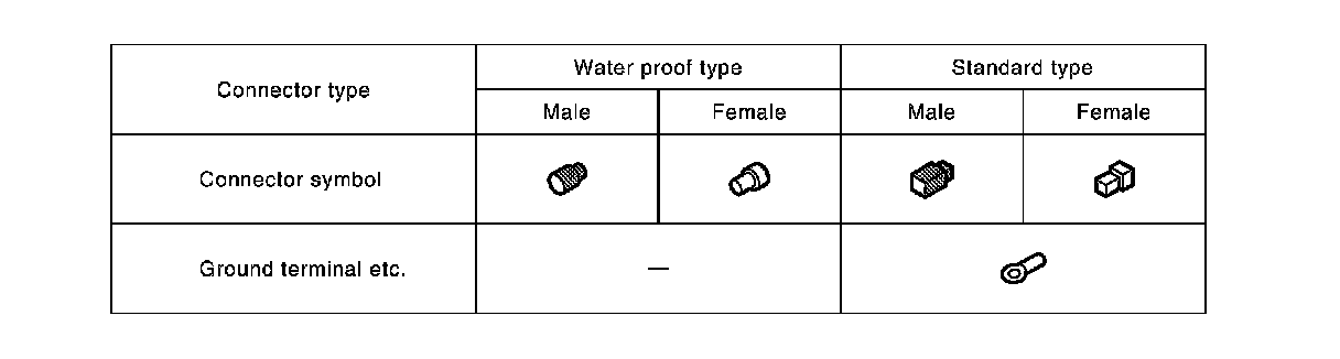 Main symbols of connector (in Harness Layout) are indicated in the below.