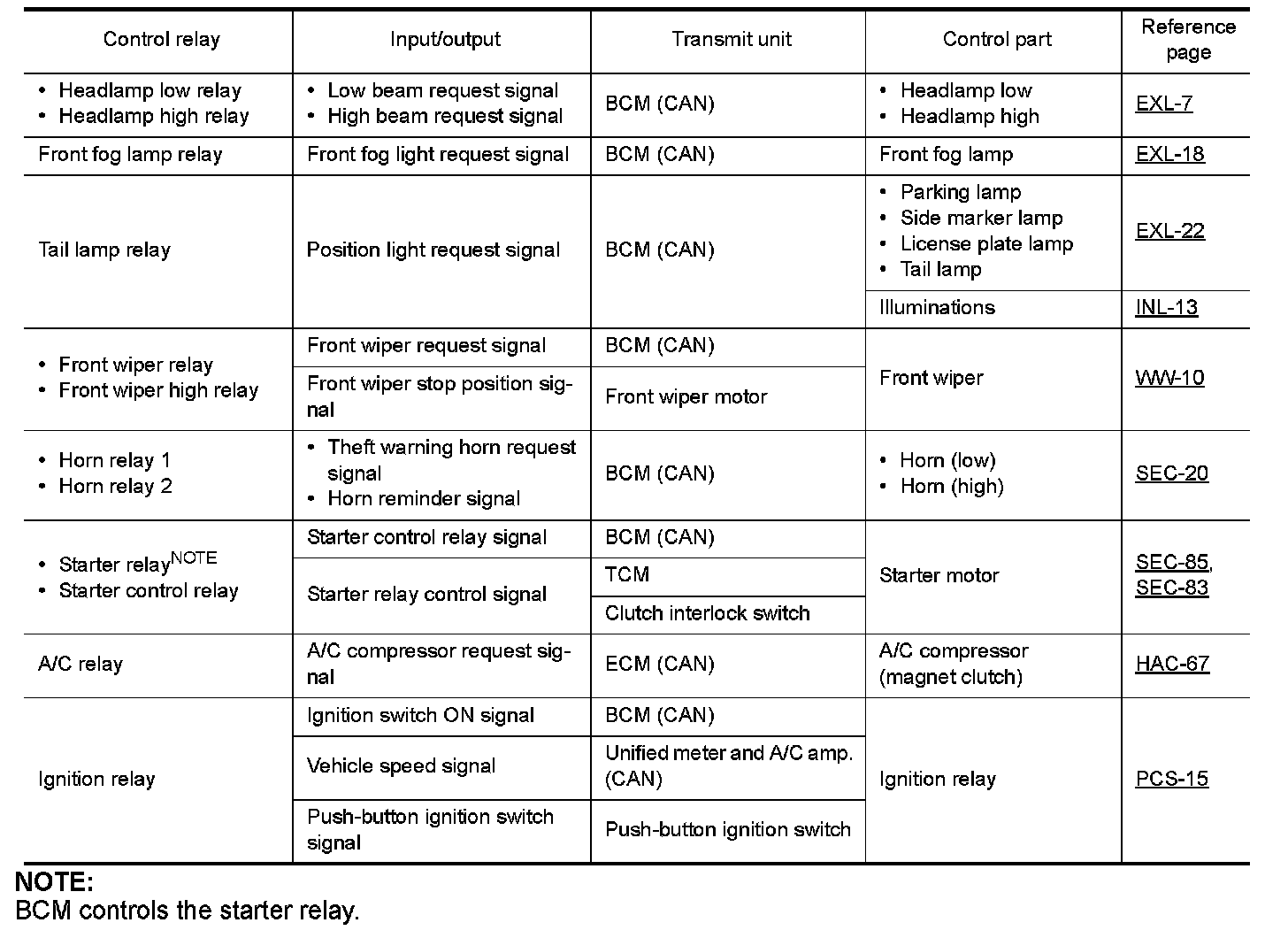 BCM controls the starter relay.