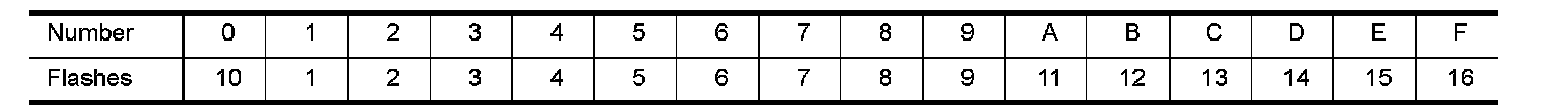 A particular trouble code can be identified by the number of four-digit numeral flashes per the following.