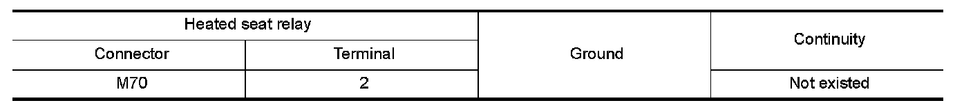 2.Check continuity between heated seat relay terminal connector and ground.