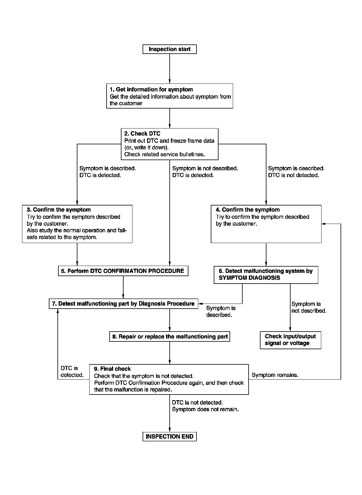 When symptom is described by the customer, refer to confirmed symptom in step 3 or 4, and check that the symptom is not detected.