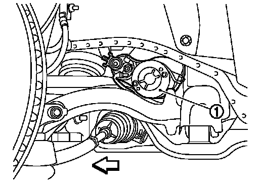 4.Disconnect steering lower joint (1), then remove it. Refer to ST25, "Exploded View".