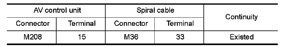 2.Check continuity between AV control unit harness connector and spiral cable harness connector.