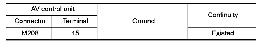 2.Check continuity between AV control unit harness connector and ground.